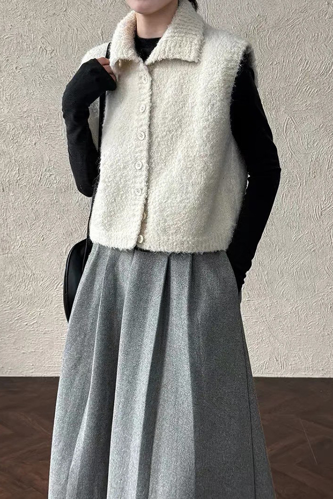 Don't forget 毛毛感領子背心-杏